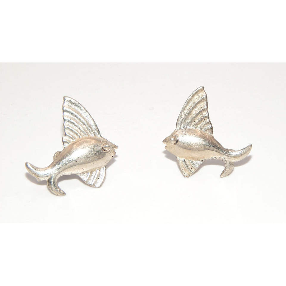 Solid .925 Sterling Silver Cast Flying Fish Fine Stud Earrings with Screw Backs