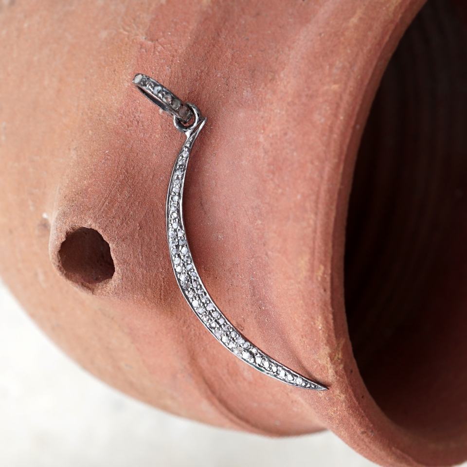 Solid 925 Sterling Silver Crescent Moon Diamond Pendant Jewelry by Metarock Jewels