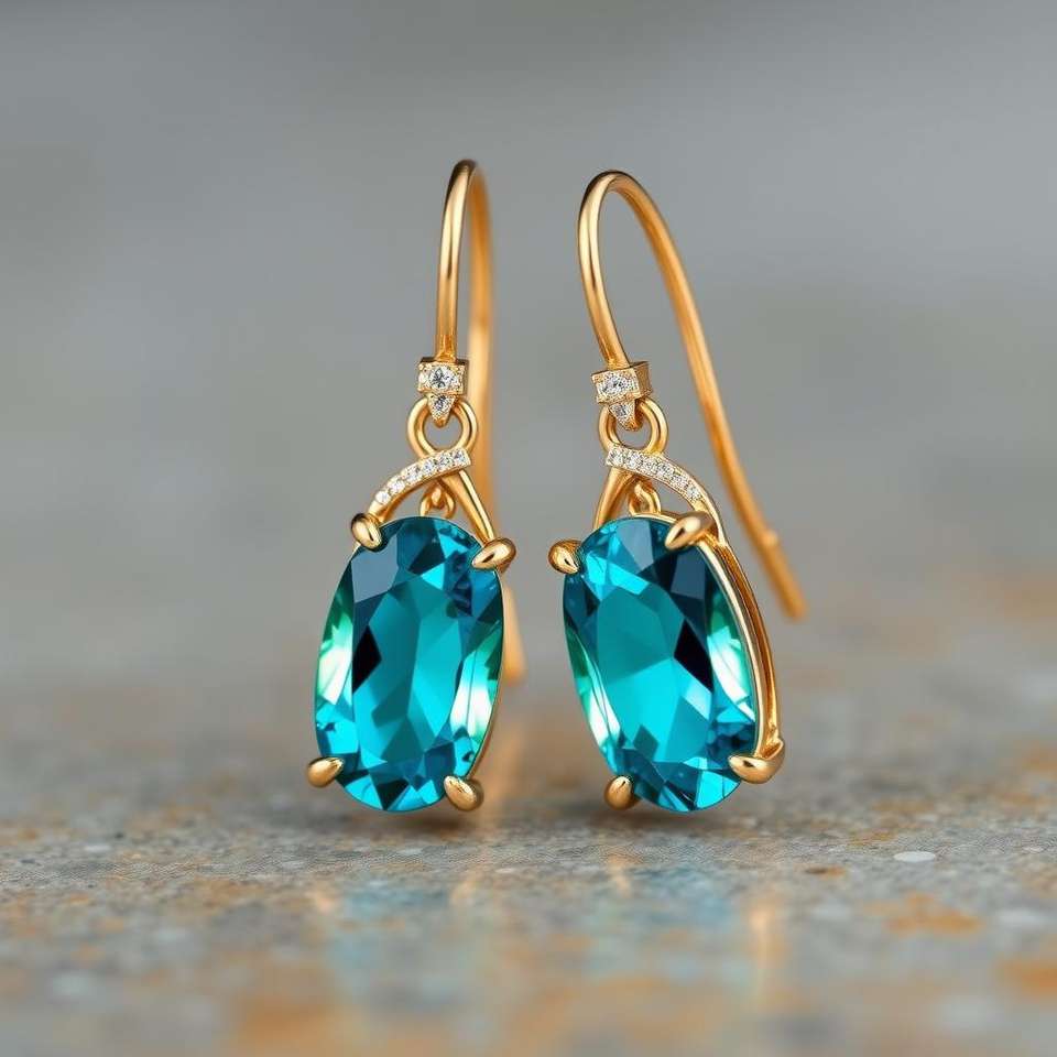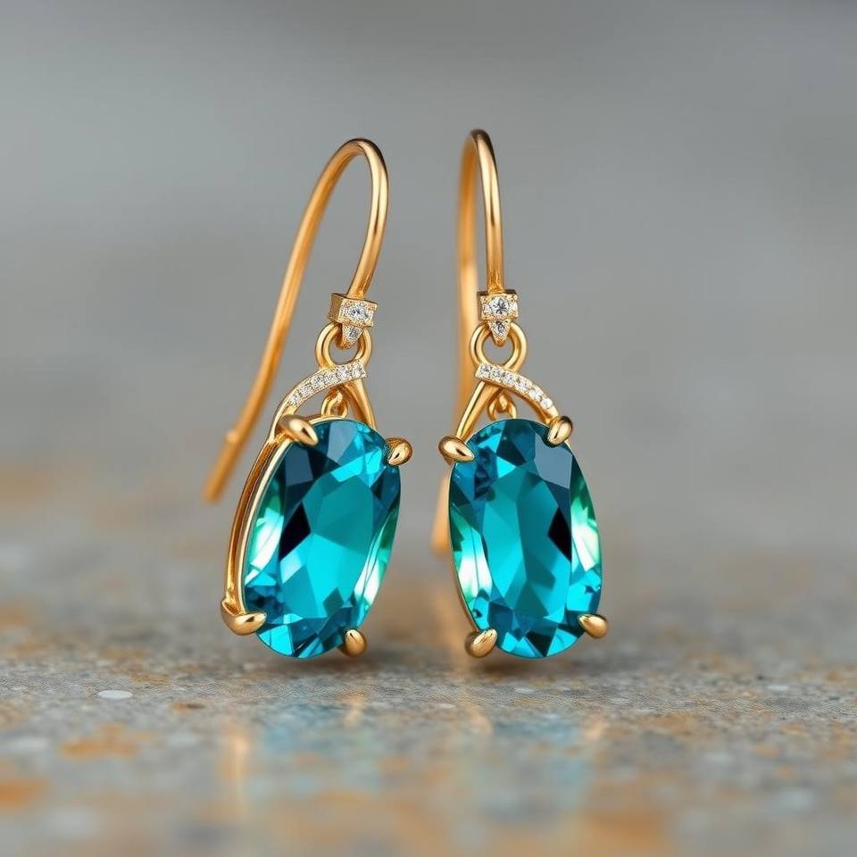 Solid 925 Sterling Silver Drop Earrings With Blue Topaz Gemstone Fashionable Wedding/Party Number Shape Pattern Women's Gift