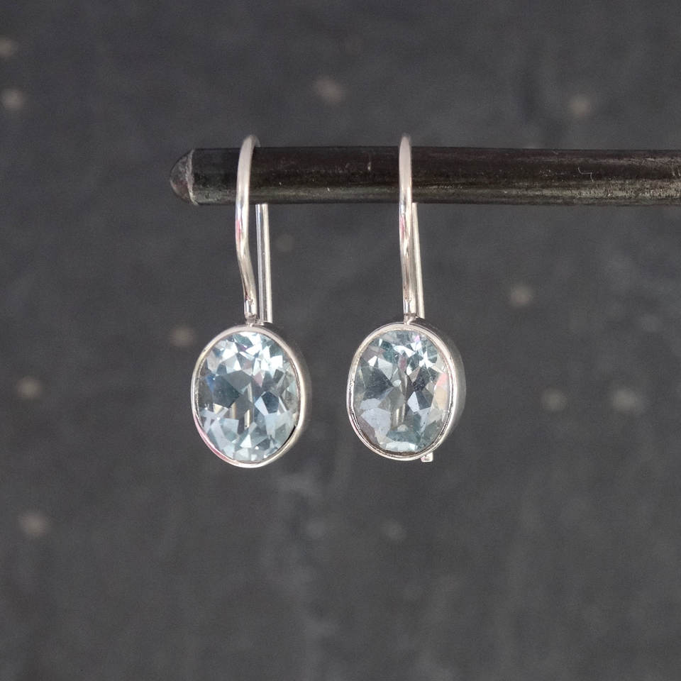 Solid 925 Sterling Silver Drop Earrings Gold-Plated Blue Topaz Gemstone Natural Oval Faceted Cut Bezel Setting Fine Parties