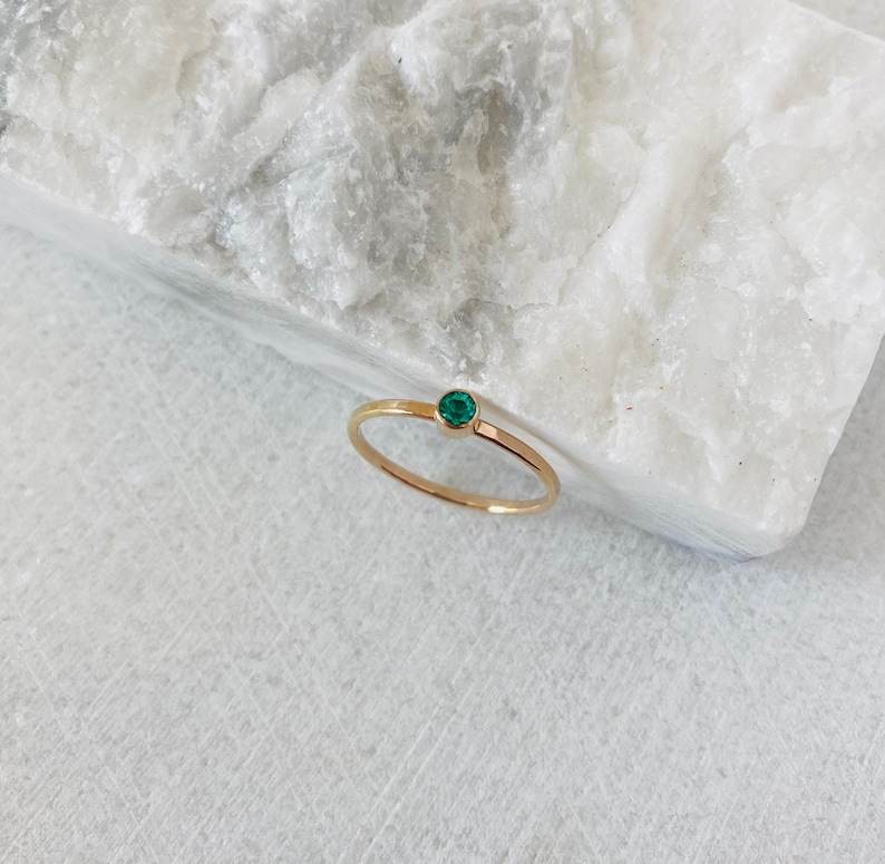 Solid 925 Sterling Silver Emerald Quartz Bezel Design 18k Gold Plated Minimalist Dainty Eternity Vermeil Fine Ring For Women