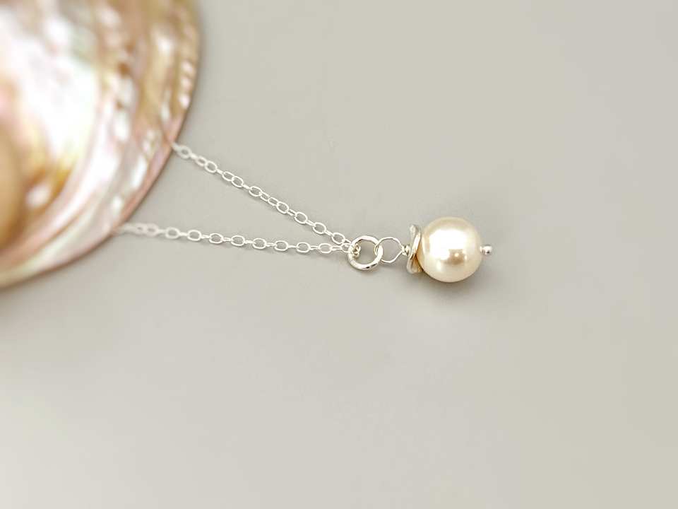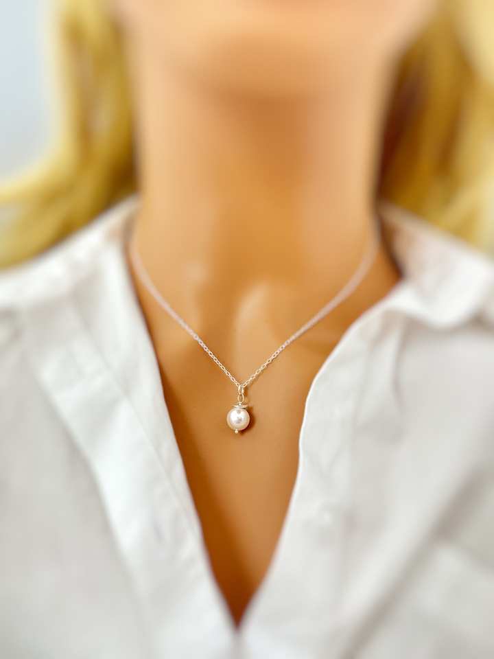 Solid 925 Sterling Silver Genuine Round Pearl Gemstone June Birthstone Charm Pendant Chain Necklace Wholesale Fine Pearl Jewelry
