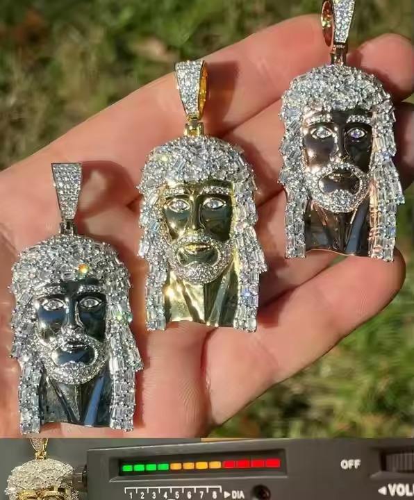 Solid 925 Sterling Silver Gold, Rhodium, Rose Gold Finish Jesus Christ Fine Jewelry Pendants & Charms Passes Diamond Tester
