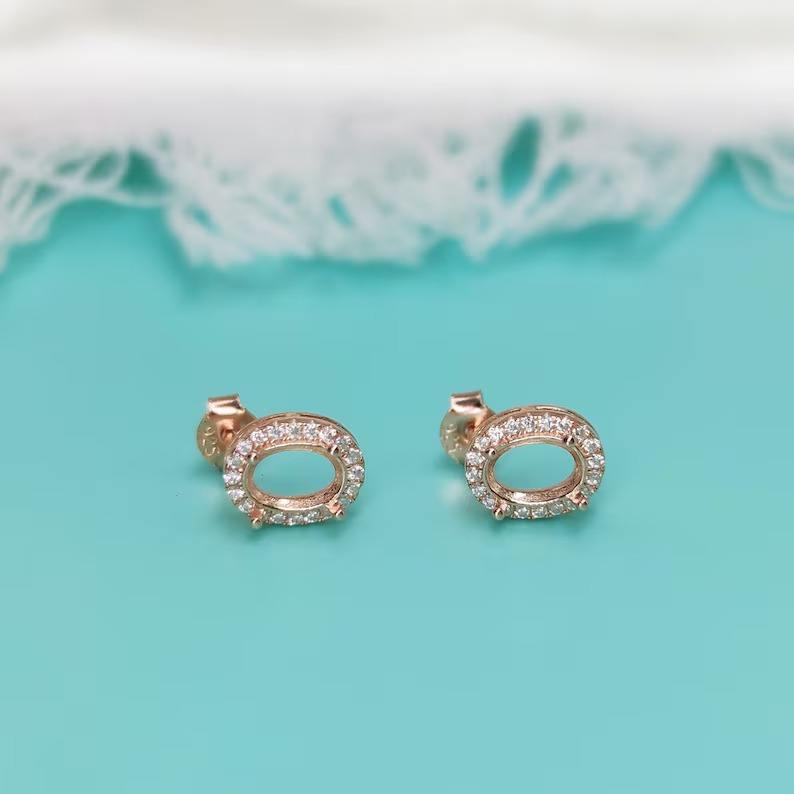 Solid 925 Sterling Silver Halo Oval Earring Setting Lightweight Jewellery Keepsake Memorial Wholesale Jewelry Blank Component