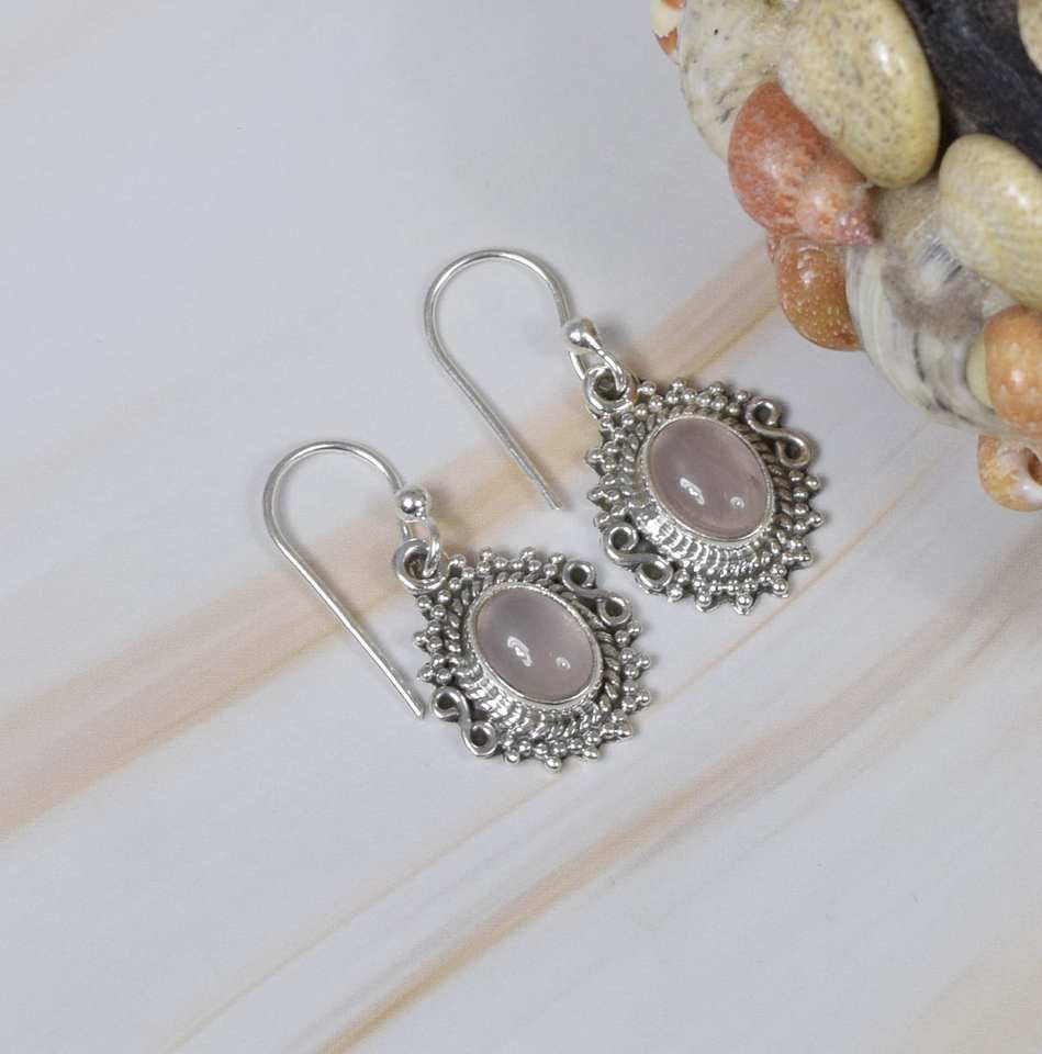 Solid 925 Sterling Silver High Quality Unique Oval Cut Pink Rose Quartz Faceted Stone Bezel Setting Drop Dangle Earrings