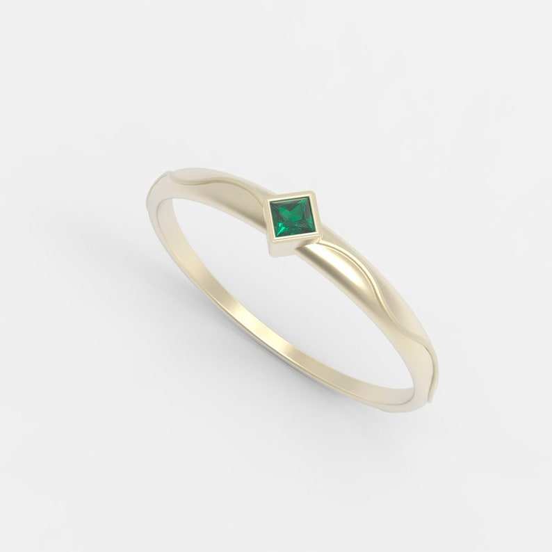 Solid 925 Sterling Silver May Birthstone Fine Ring Green Hydro Emerald Gemstone Solitaire Stacking 5mm Square Keepsake Jewelry