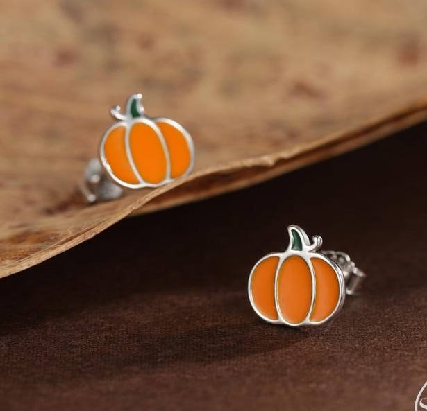 Solid 925 Sterling Silver Minimalist Enamel Pumpkin Studs Earrings Cute Fun Quirky Jewelry Halloween Gifts For Her Ghost Stud