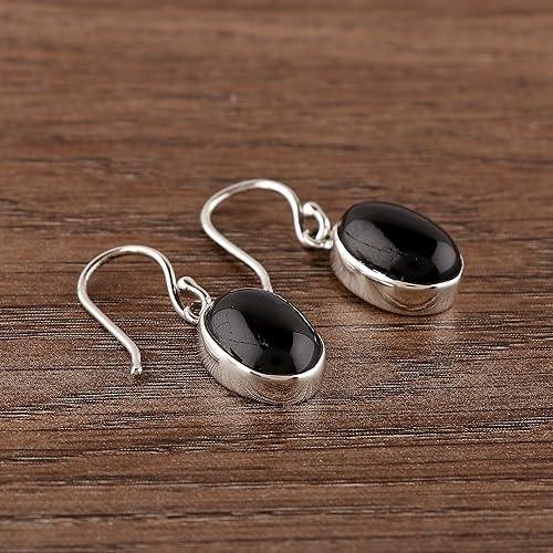 Solid 925 Sterling Silver Natural Black Onyx Gemstone Oval Shape Black Color Handmade Earring Jewelry 925 Silver Jewelry