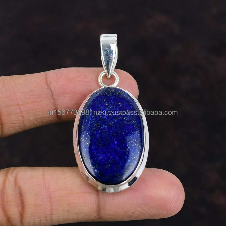 Solid 925 Sterling Silver Pendant Lapis Lazuli Gemstone Handmade Silver Gemstone Jewelry Lapis Pendant for Necklaces Women