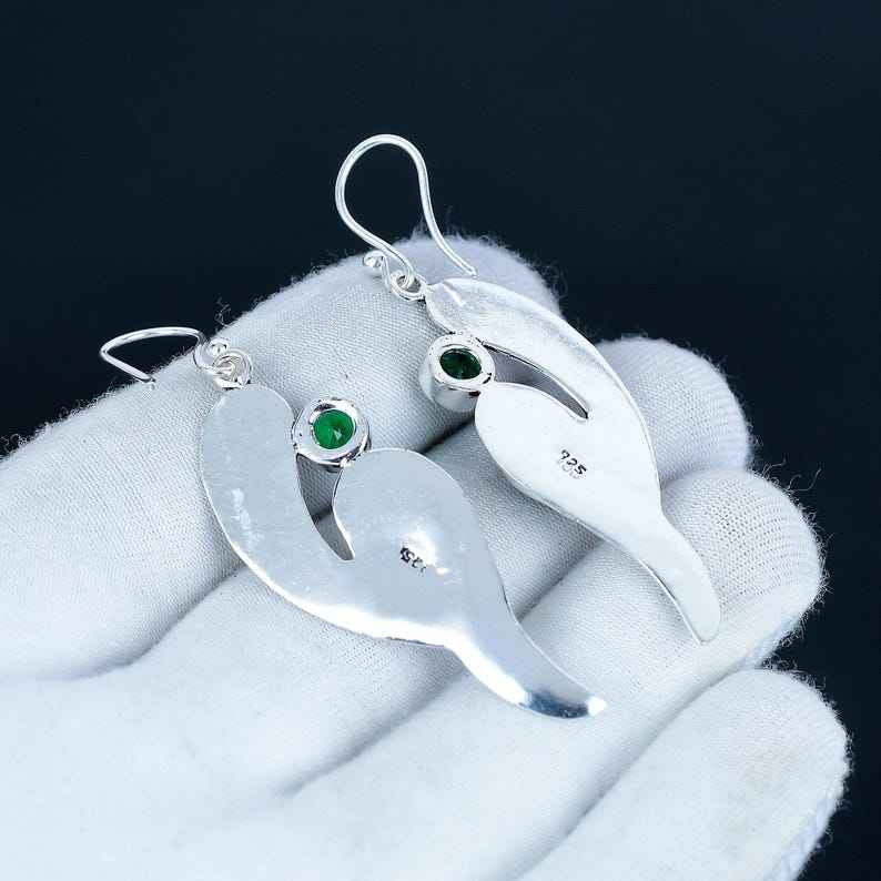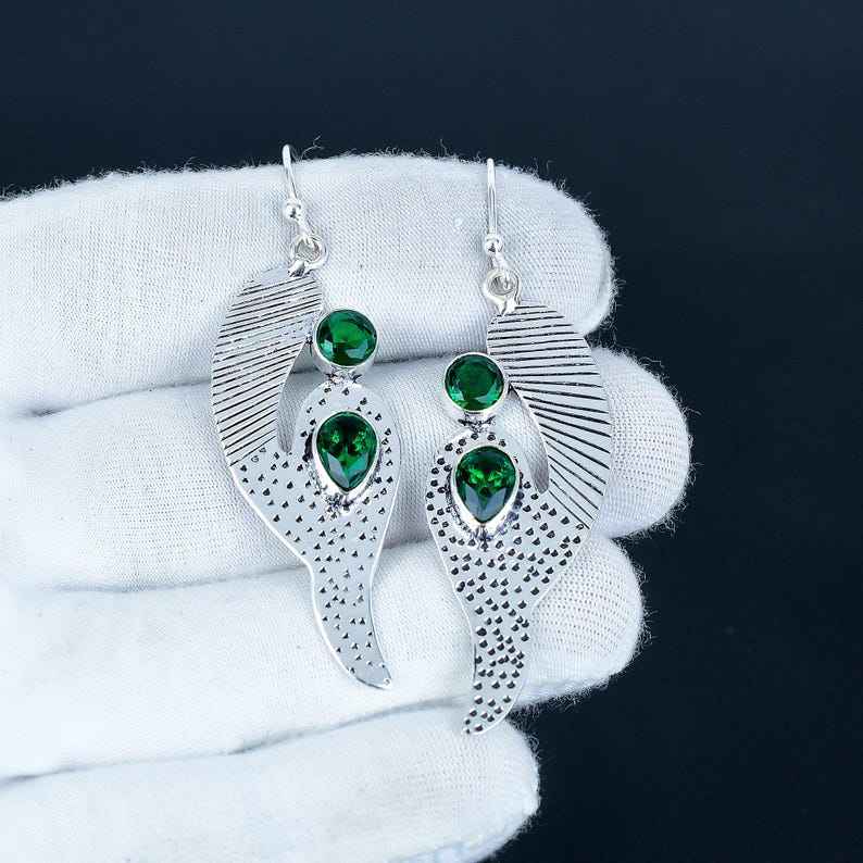 Solid 925 Sterling Silver Plated Bohemian Style Fashionable Emerald Quartz Round Gemstone Natural Bezel Anniversary Earring