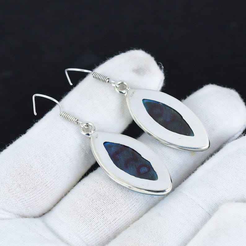 925 Sterling Silver Plated Bohemian Style Fashionable Blue Turquoise Marquise Gemstone Natural Bezel Party Wear Earring