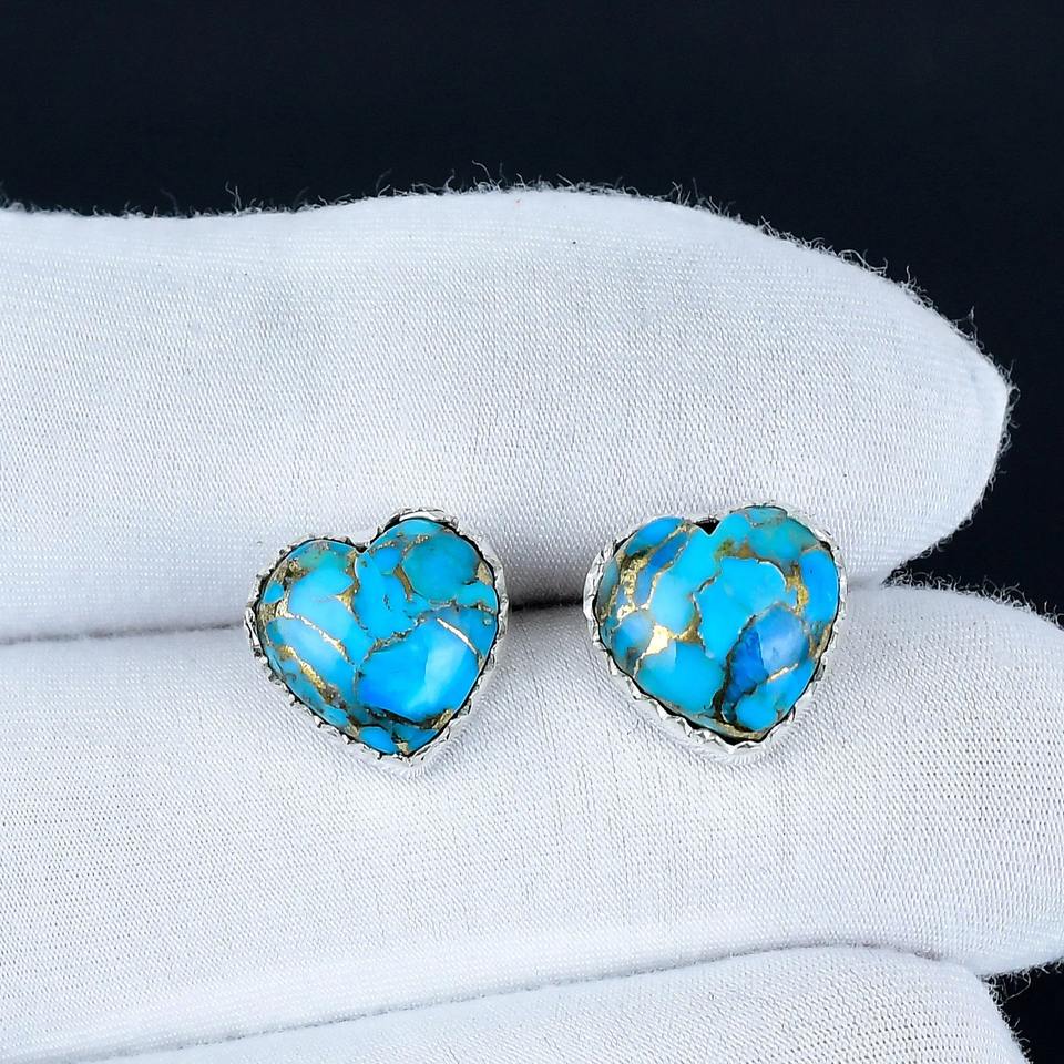 Solid 925 Sterling Silver Plated Bohemian Style Fashionable Blue Copper Turquoise Gemstone Natural Bezel Anniversary Earring