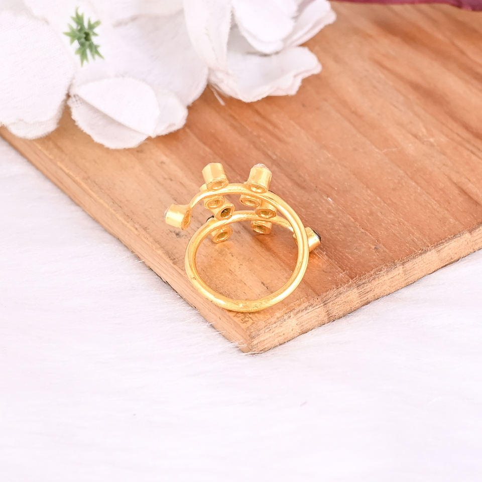 Solid 925 Sterling Silver Smoky & Crystal Gemstone Handmade Boho Designer Birthday Gift Ring Yellow Gold Plated Jewelry