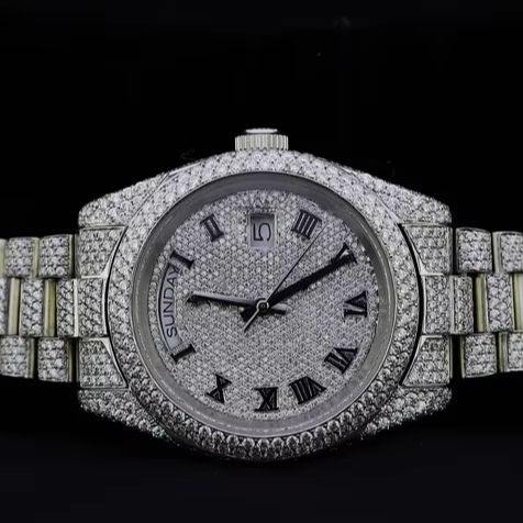Solid 925 Sterling Silver Watch Fully Iced Out Watch Bust Down Hip Hop Diamond Watch For Men's Fashion