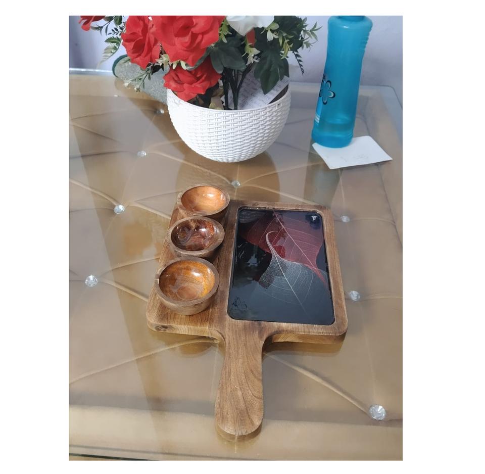 Solid Acacia Wood Serving Tray Unique Rectangle Design Custom Home Size Plated Bowls for Chips Dips Platter Board Eco-Friendly