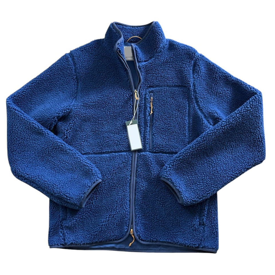 Solid Blue Color Zipper Pocket Style Long Sleeve Warm Up Winter Outer Wear Unique Style Wholesale Rate Sherpa Fleece Jackets