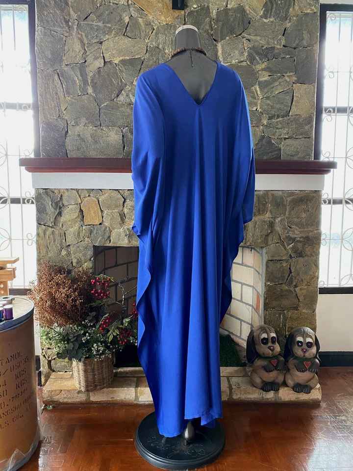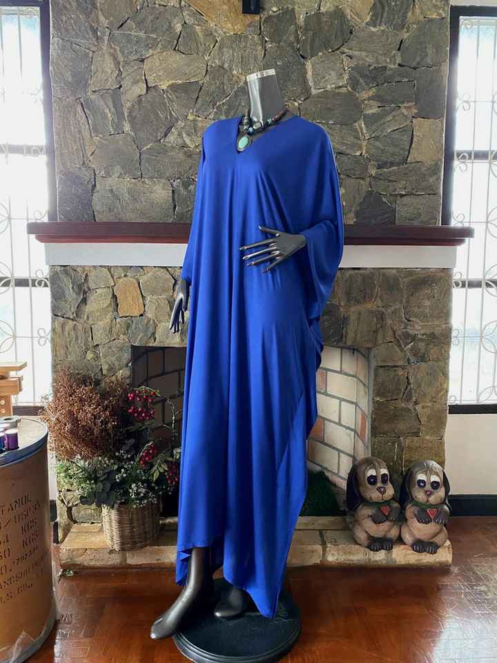 Solid Blue Hand Dyed Rayon Caftan Dress Plus Size Maxi Length Relaxed Fit Women Wear