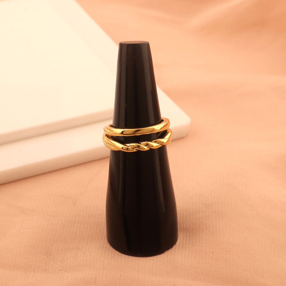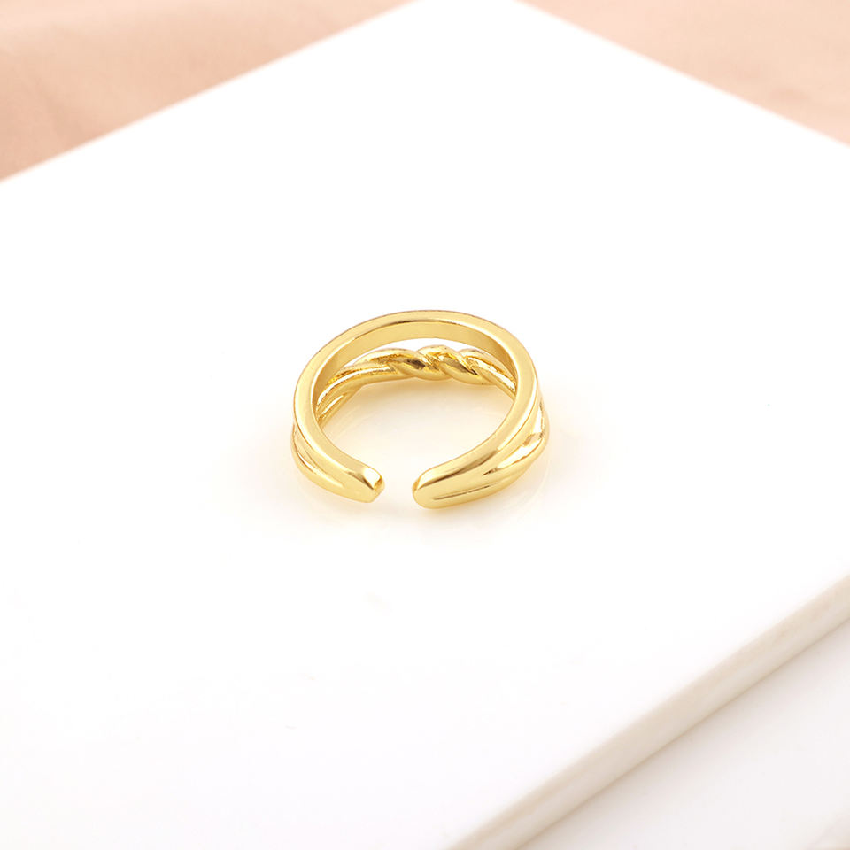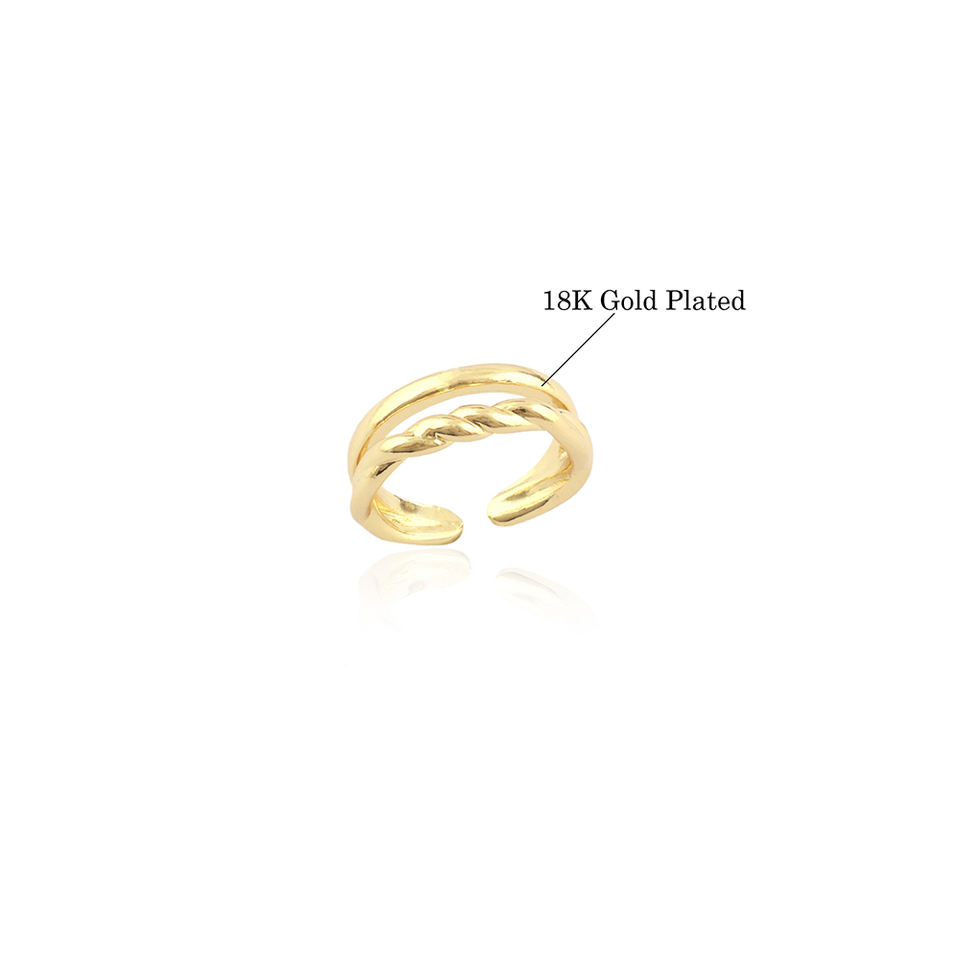 Solid Brass 18K Gold Plated Wedding Band Adjustable Cuff & Stackable Band Retro Metal Twist for Parties & Anniversaries