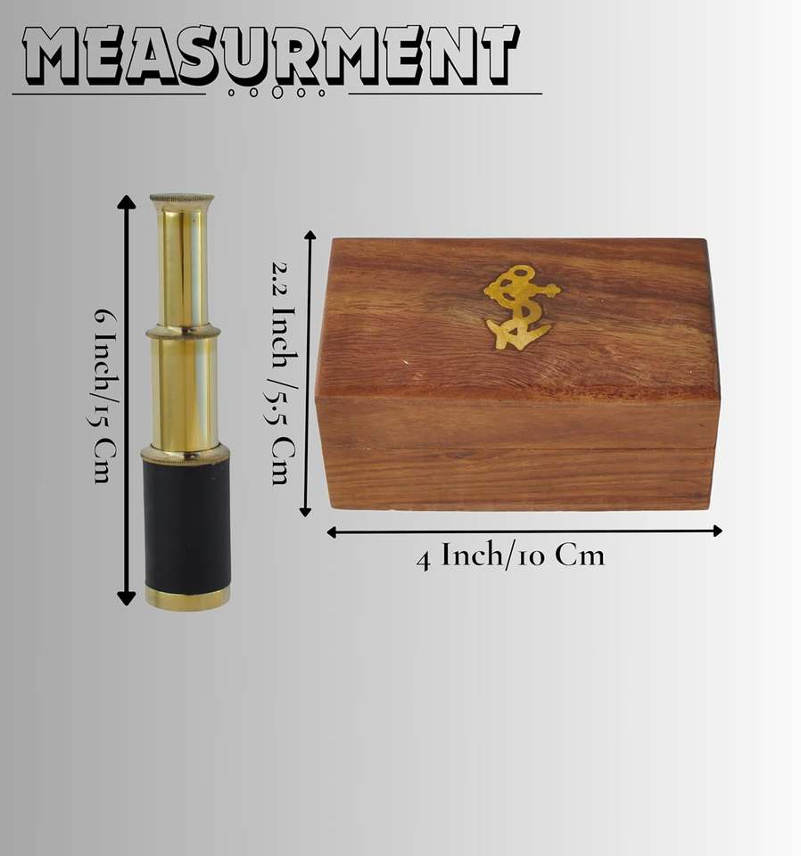 Antique Style Solid Brass Old Nautical Theme Decor Binocular Microscope Wood Box with Night Vision Telescope Design Metal Craft
