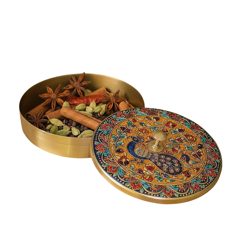 Solid Brass Round Spice Box Removable Containers | Vintage Style Indian Masala Dabba Kitchen Organization and Commercial Use