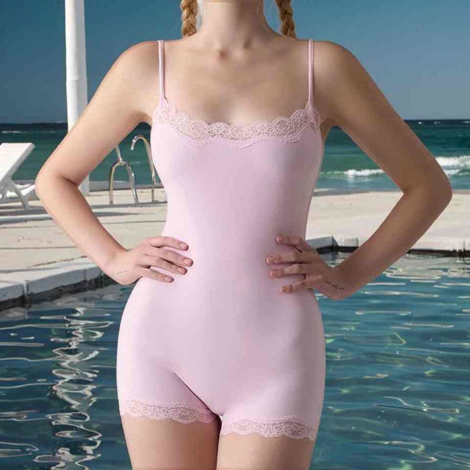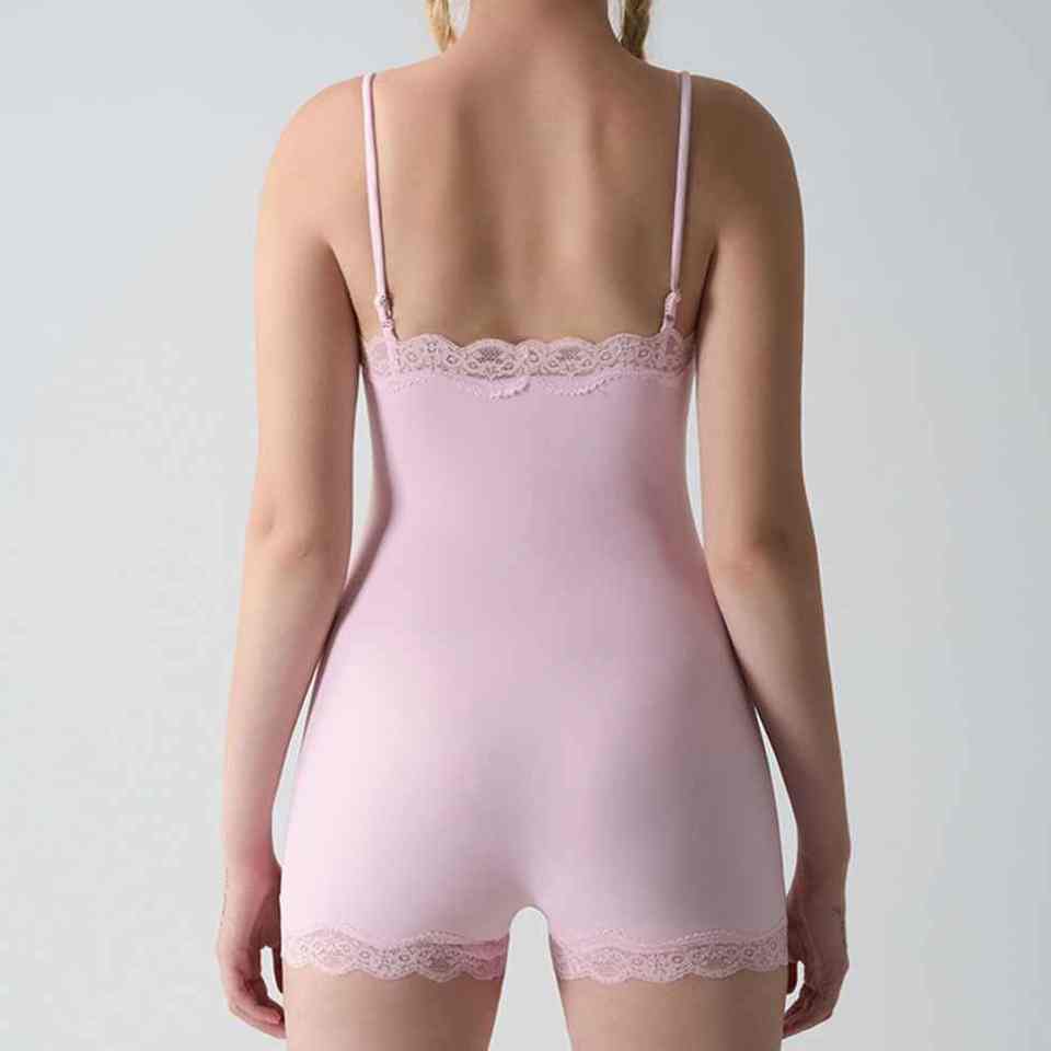 Solid Casual Nude Feel Neck Lace Adjustable Strap Breathable Tummy Control Skinny Fit Body Suit For Women