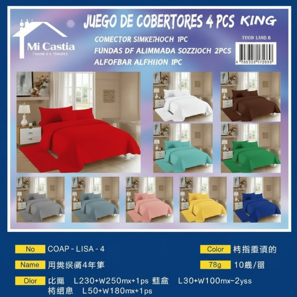 Solid Color 4-Piece King Size Bedding Set Includes Fitted Sheet Coverlet Pillowcases Bed End Mat