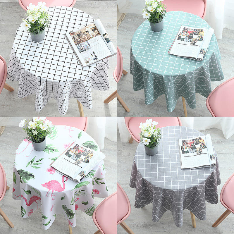 Solid Color Checkered Pvc Round Tablecloth For Home Dining Coffee Table Use Waterproof Oil Proof Washable Heat Resistant
