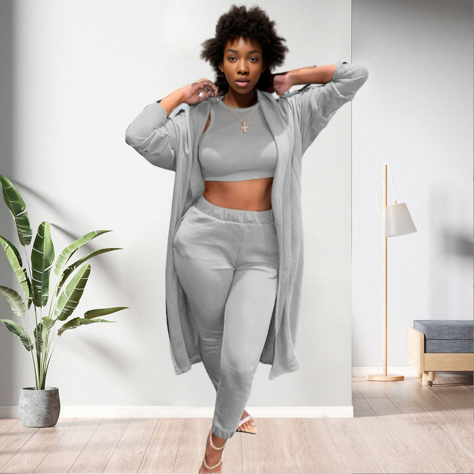Solid Color Coat Crop Top Bodycon Youthful and Beautiful Jogger Women's Sets Three Pieces Fashion