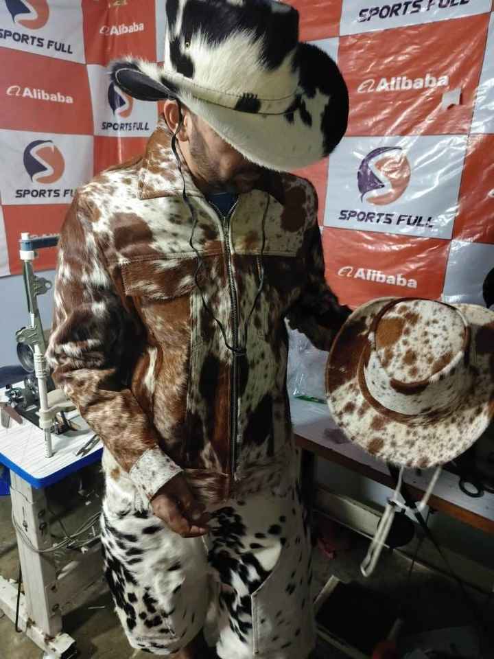 Solid Color Cowhide Genuine Leather Canvas Winter Quilted Jacket Unisex Heavy Duty Mandarin Collar Fully Customizable Low Price