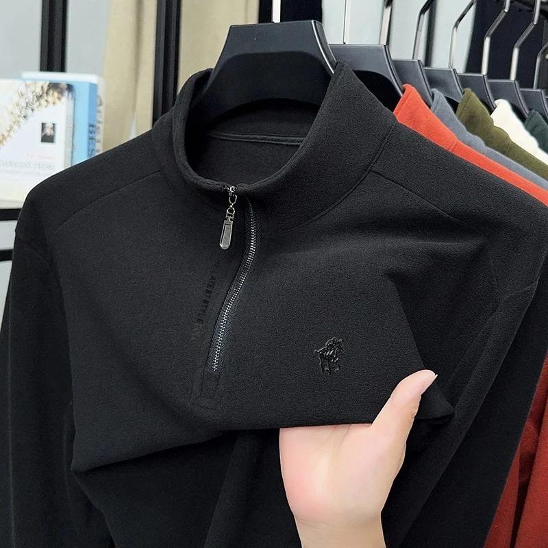 Solid Color Fleece-lined Men's Half for Turtle Neck Top Inner Long Sleeve Warm Smooth Slimming Base Layer Top 100% Cotton