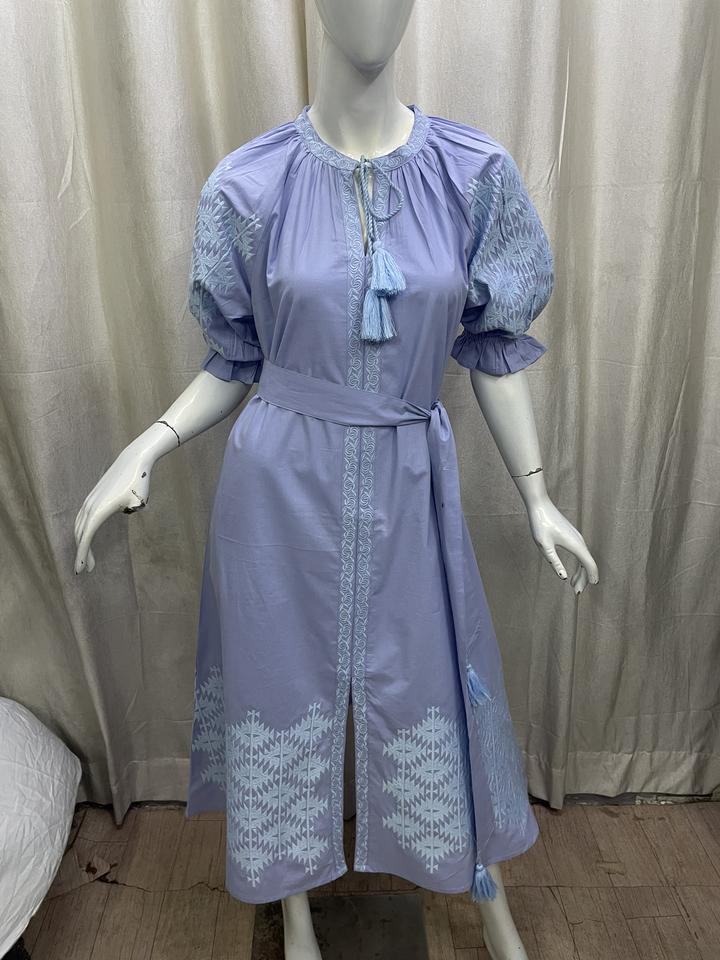 Solid Color High Quality 100% Cotton Woven Natural Waist Washable Long Embroidered Short Sleeve Women Winter Party Wear Dresses