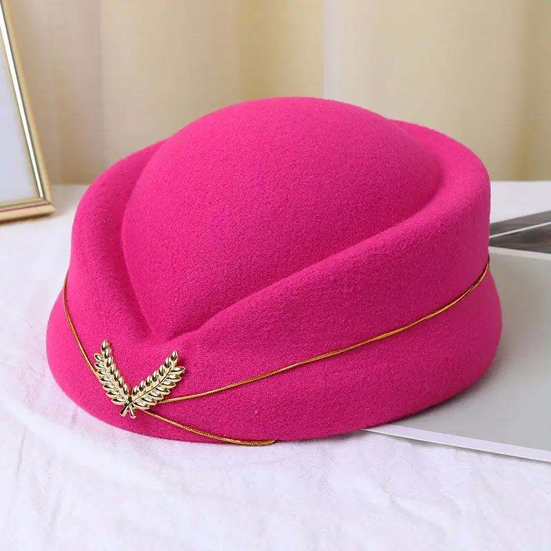Solid Color Holiday Party Formal Uniform Women Beret Stage Performance Cap Stewardess Hat