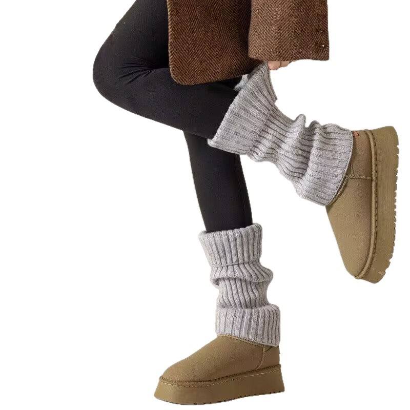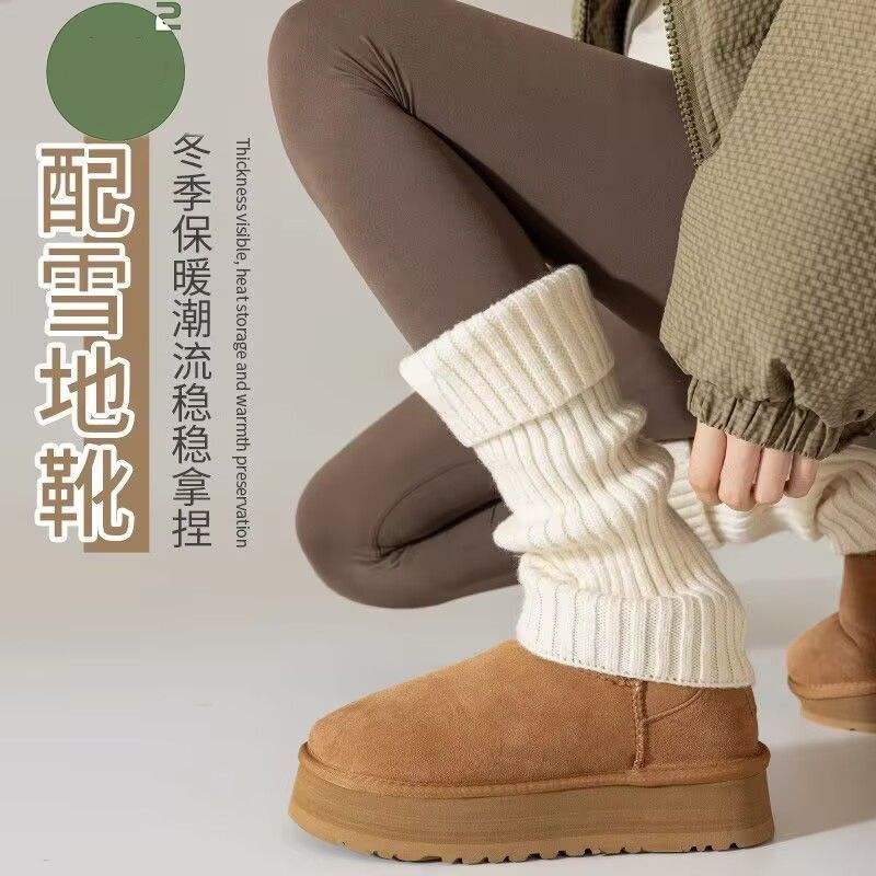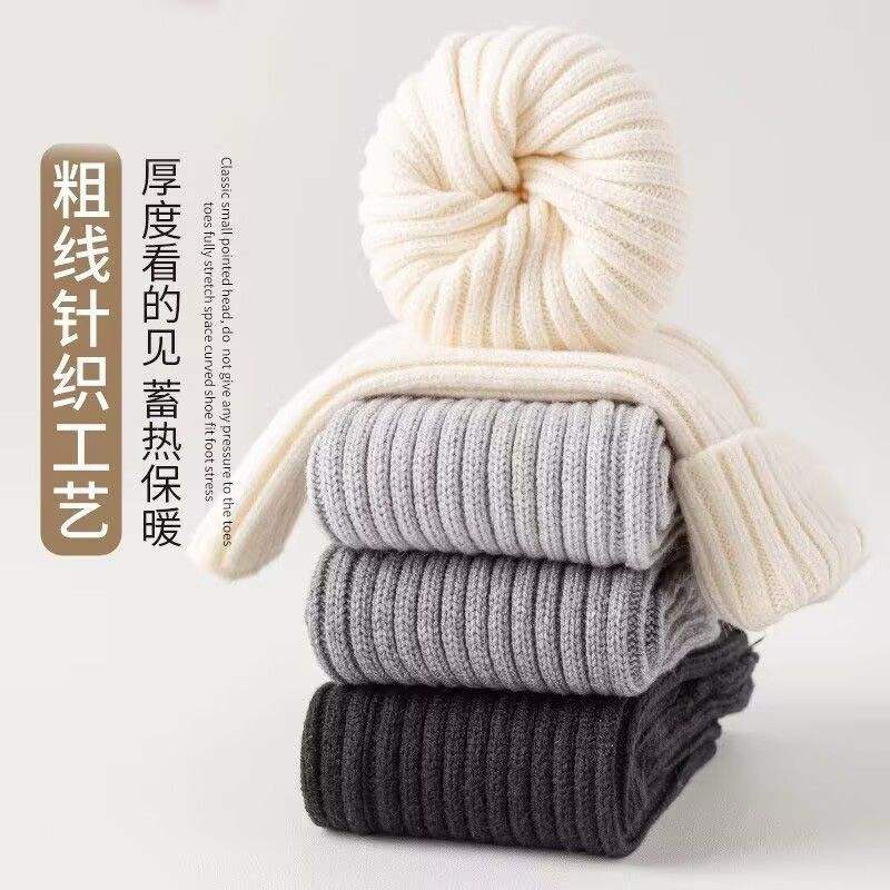 Solid Color Knit Slouch Socks For Women Winter Warm Calf Length Thick Stretchy Snow Boot Socks Casual Fashion Gray White Black