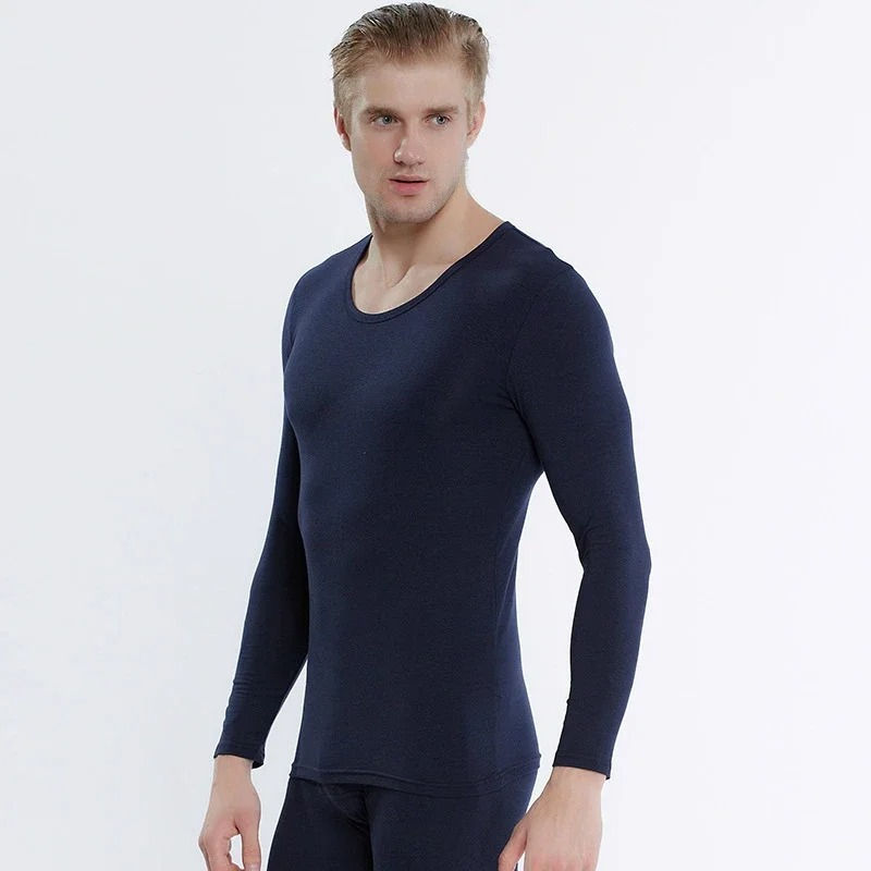 Solid Color Men Thermal Underwear Set Fall Winter Home Wear 2 Piece Set Long Sleeve O-neck T-shirts Pant Sets Ropa