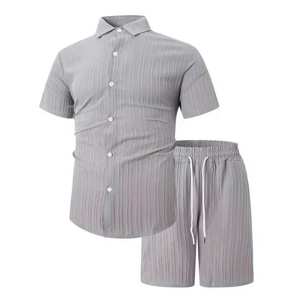 Solid Color Men's Summer Two Piece Clothes Suit Fashion Short Sleeve Shirt Shorts 2 Piece Linen Set