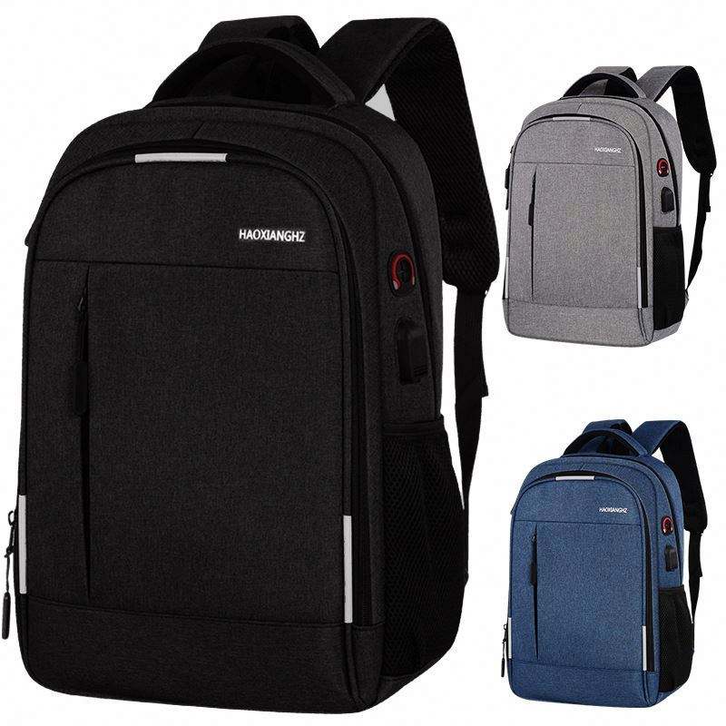Solid Color Oxford Zipper Backpack Unisex Fashion Trend 15.6-inch Computer Travel Bag USB for Early High School College Students