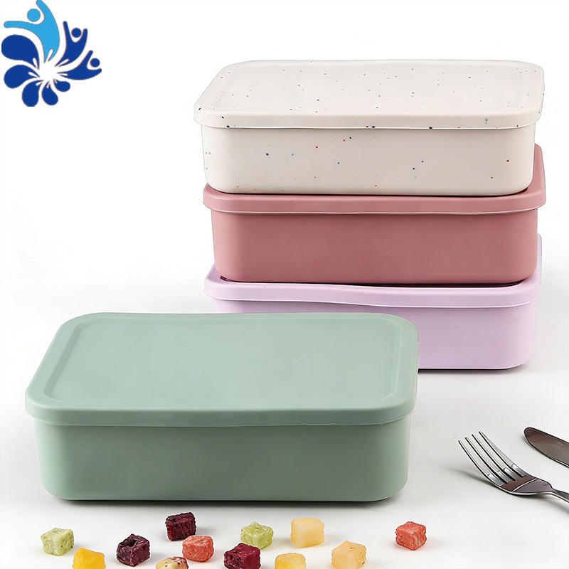 Solid Color Silicone Lunch Box Square Three Compartment Airtight Microwaveable For Office Workers