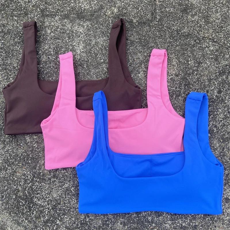 Solid Color Sports Bra Gym Yoga Crop Top Vest Women High Impact Fitness Bralette Push Up Running Tight Underwear With Chest Pad