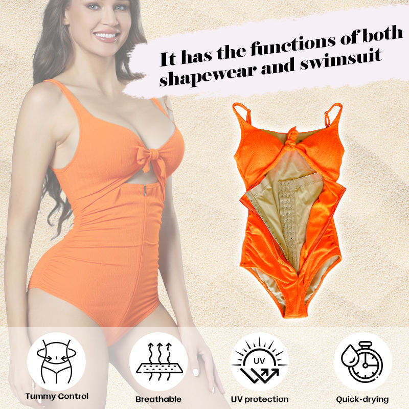 Solid Color Triangle One-piece Beach Swimsuit Tummy Abdomen Control Shapewear Sculpting Outdoors Bikini Swimwear for Women