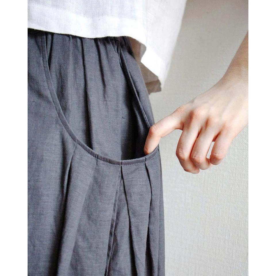Loose Linen Skirt with Elastic Band and Pockets