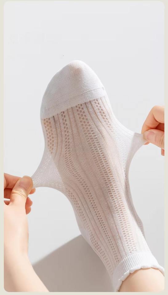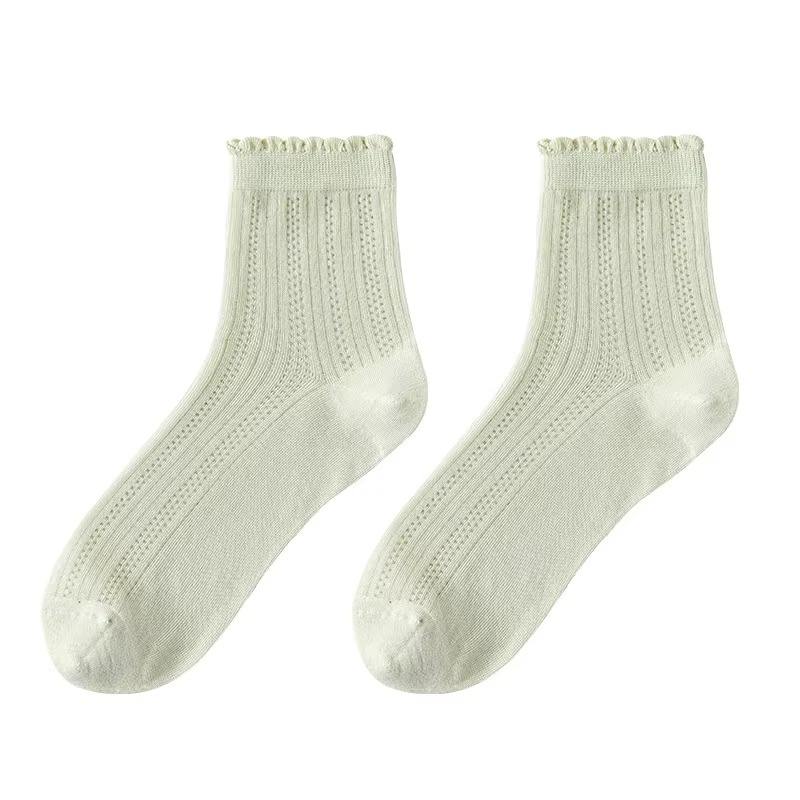 Solid Cotton Mesh Crew Socks Girls Breathable Ruffled Socks for Women