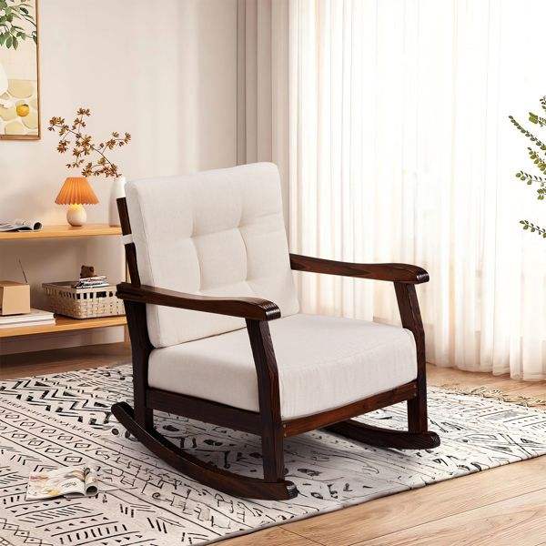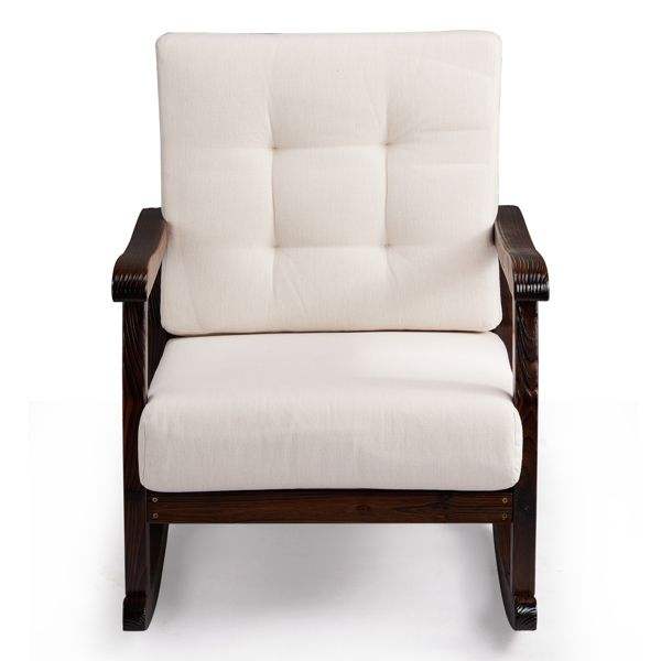 Solid Fir Wood Outdoor Rocking Chair with Detachable Washable Cushions Patio Rocker Inclined Backrest Solid Fir Wood Rocker Pa