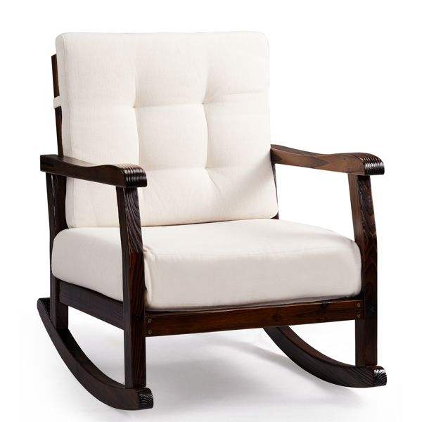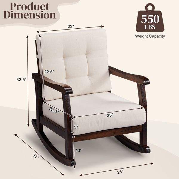 Solid Fir Wood Outdoor Rocking Chair with Detachable Washable Cushions Patio Rocker Inclined Backrest Solid Fir Wood Rocker Pa