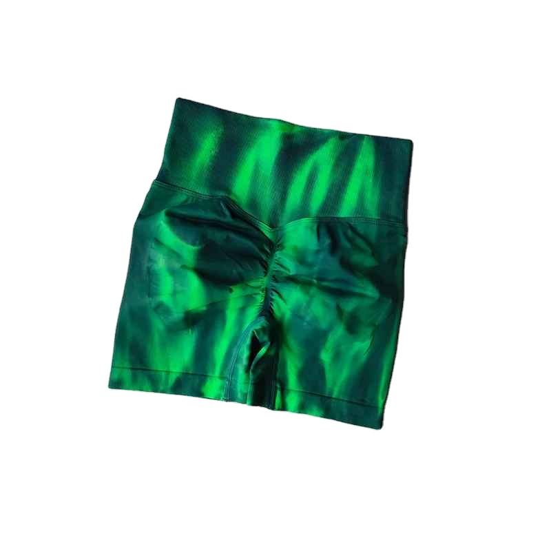 Solid Fitness Shorts Elastic Waist Peach Tie-Dyed Sports Pants Quick Abdomen Tightening Hip Beauty Legging High Waist Hip