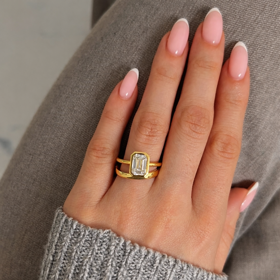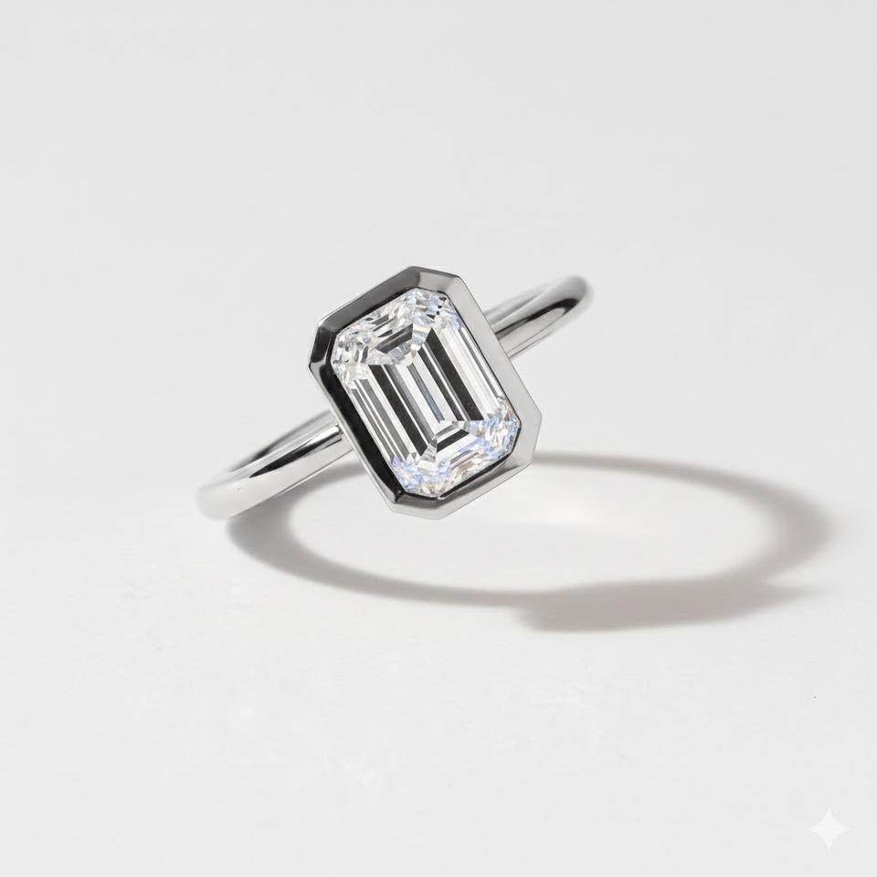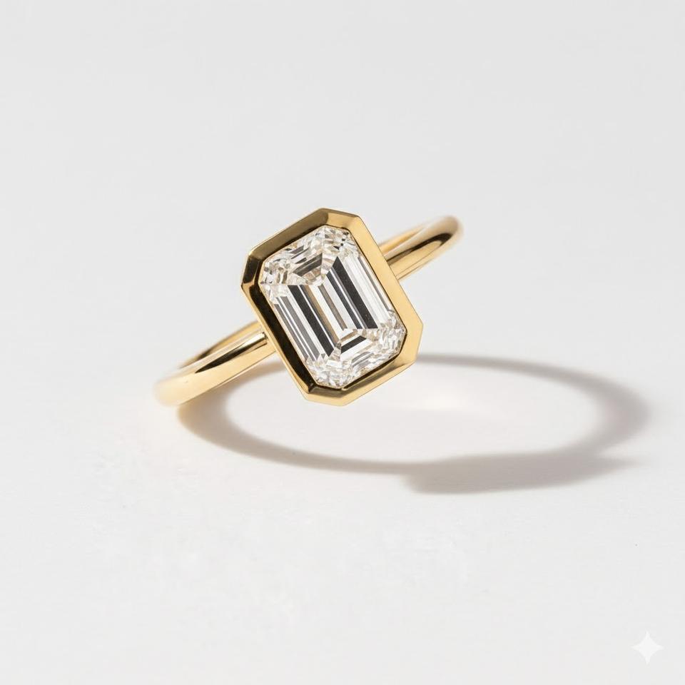 Product name:14K Gold Emerald Cut Bezel Set Diamond Solitaire Ring