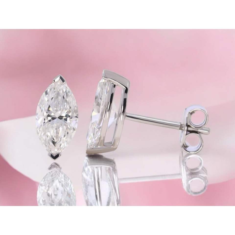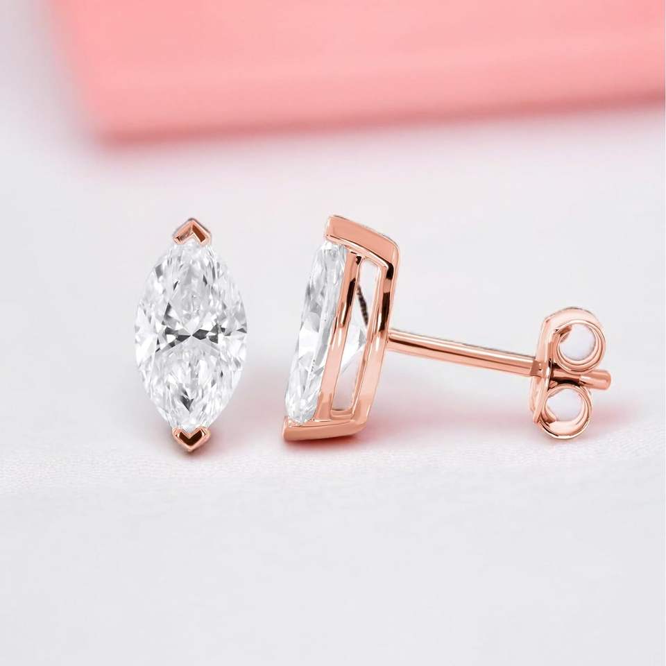 Solid Gold 1.00 Carat F-G/VS Marquise Lab Grown Diamond Push Back Stud Earrings Made in Fashion Style