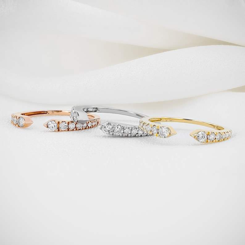Elvora Gems Solid Gold Diamond Engagement Ring 0.31 Ct Rhodium Plated Double Prong Setting IGI Certified Stacking Open Graduated