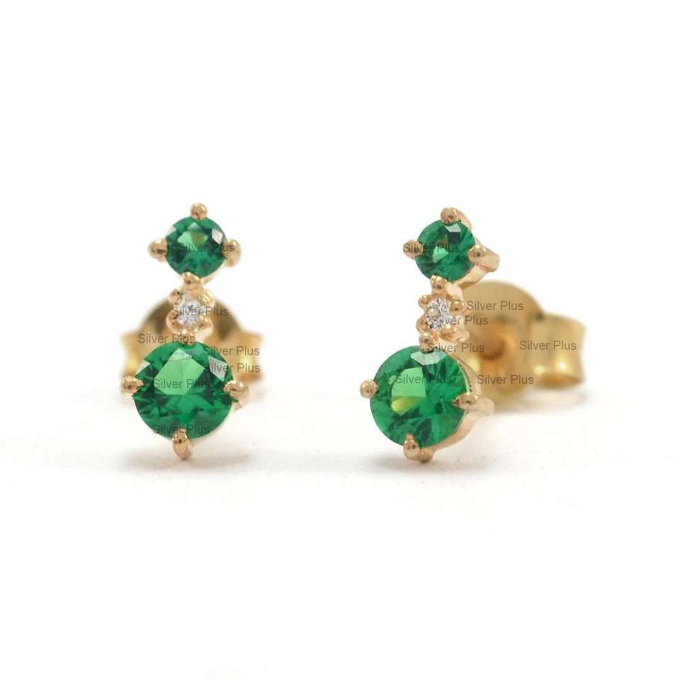 Solid Gold Stud Earrings with Emerald and Natural Diamond