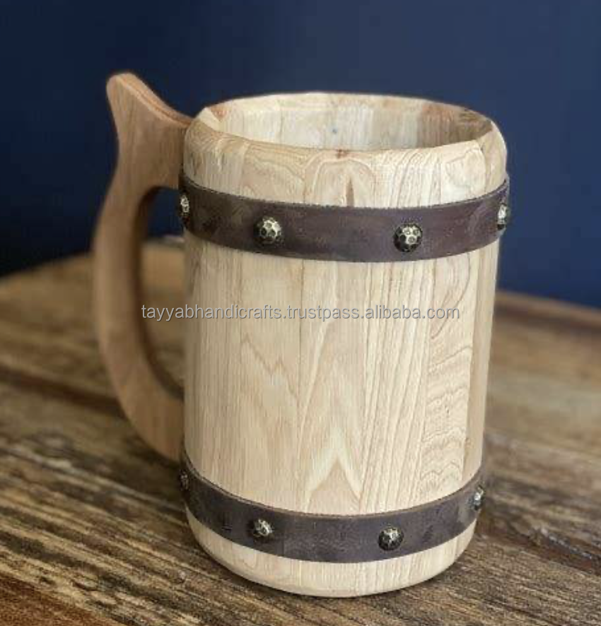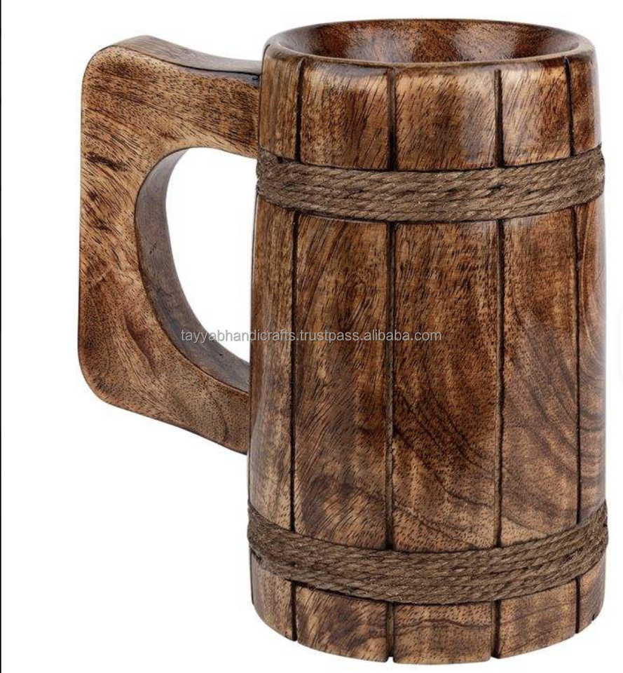 Solid Handmade Wooden Beer Mug From India Tayyab Handicraft Classic Style 50-Piece Stocked for Business Gifts