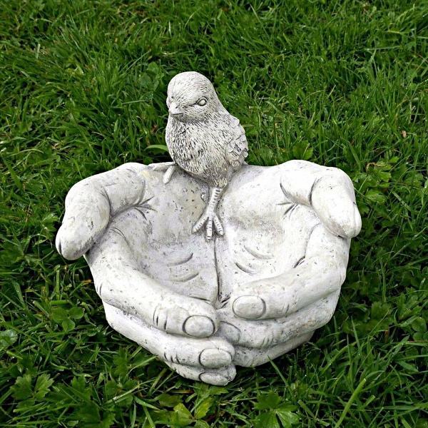 Solid Hands Sitting Bird Style Birds Feeder Lawn Home Garden Decorative Bird Feeding Bowl Metal Craft Decorated Accent Sculpture